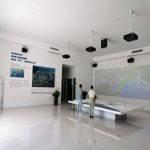 該項(xiàng)目相對(duì)較小,深圳龍程威尼根據(jù)用戶需求,以及營(yíng)銷(xiāo)中心的行業(yè)性質(zhì),以聲光電數(shù)字沙盤(pán)展現(xiàn)為主,側(cè)方位墻體上以投影機(jī)進(jìn)行輔助展示說(shuō)明。