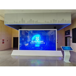 該項(xiàng)目相對較小,深圳龍程威尼根據(jù)用戶需求,以及營銷中心的行業(yè)性質(zhì),以聲光電數(shù)字沙盤展現(xiàn)為主,側(cè)方位墻體上以投影機(jī)進(jìn)行輔助展示說明。